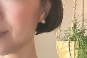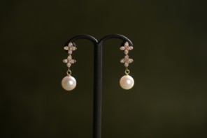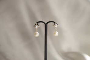 私が普段から愛用しているのは、大粒の南洋真珠のスタッドピアス。 お客様から「素敵ですね」とお褒めいただく