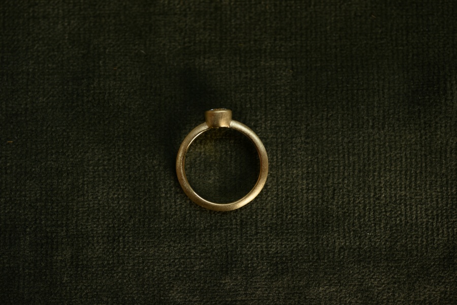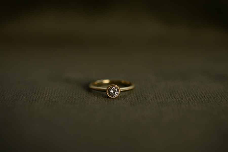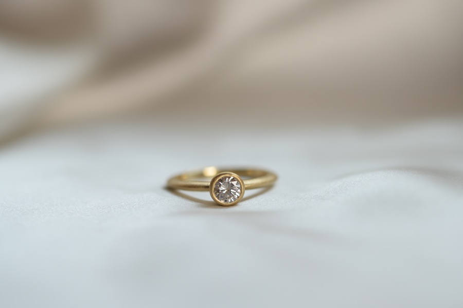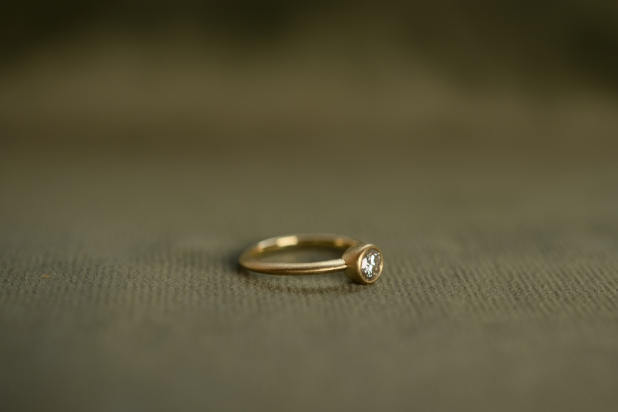 ゴールドの優しい艶消しと、絶妙なサイズ感のダイヤ。