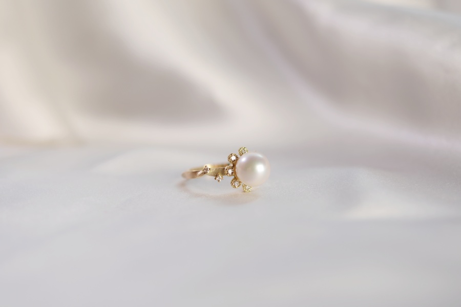 パールのリングは高さが出るため、日常の動作では少し気を遣う場面もあるかもしれません。