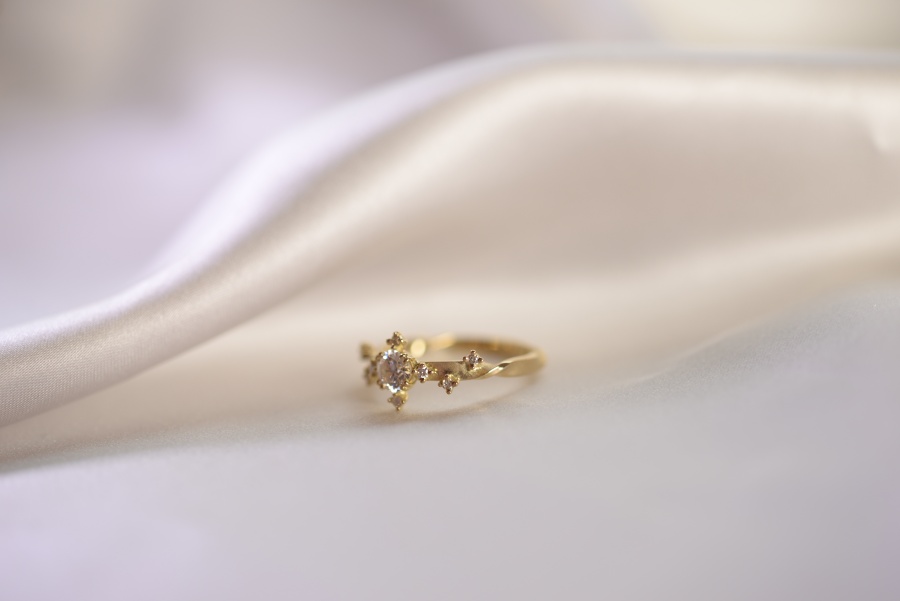 (BEFOREのリング。ウェーブと華奢なアームが特徴)